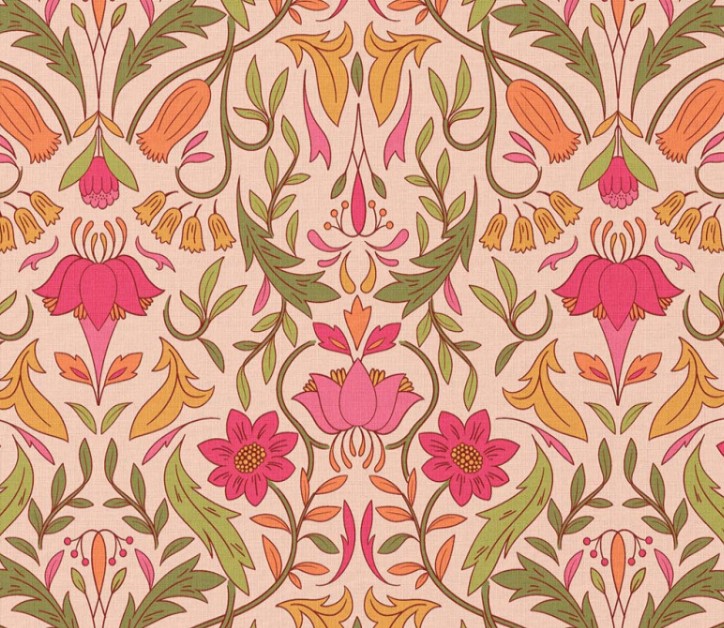 Un joli imprimé floral rose sur un fond pêche pour vos projets d’accessoire, de déco ou vestimentaire.