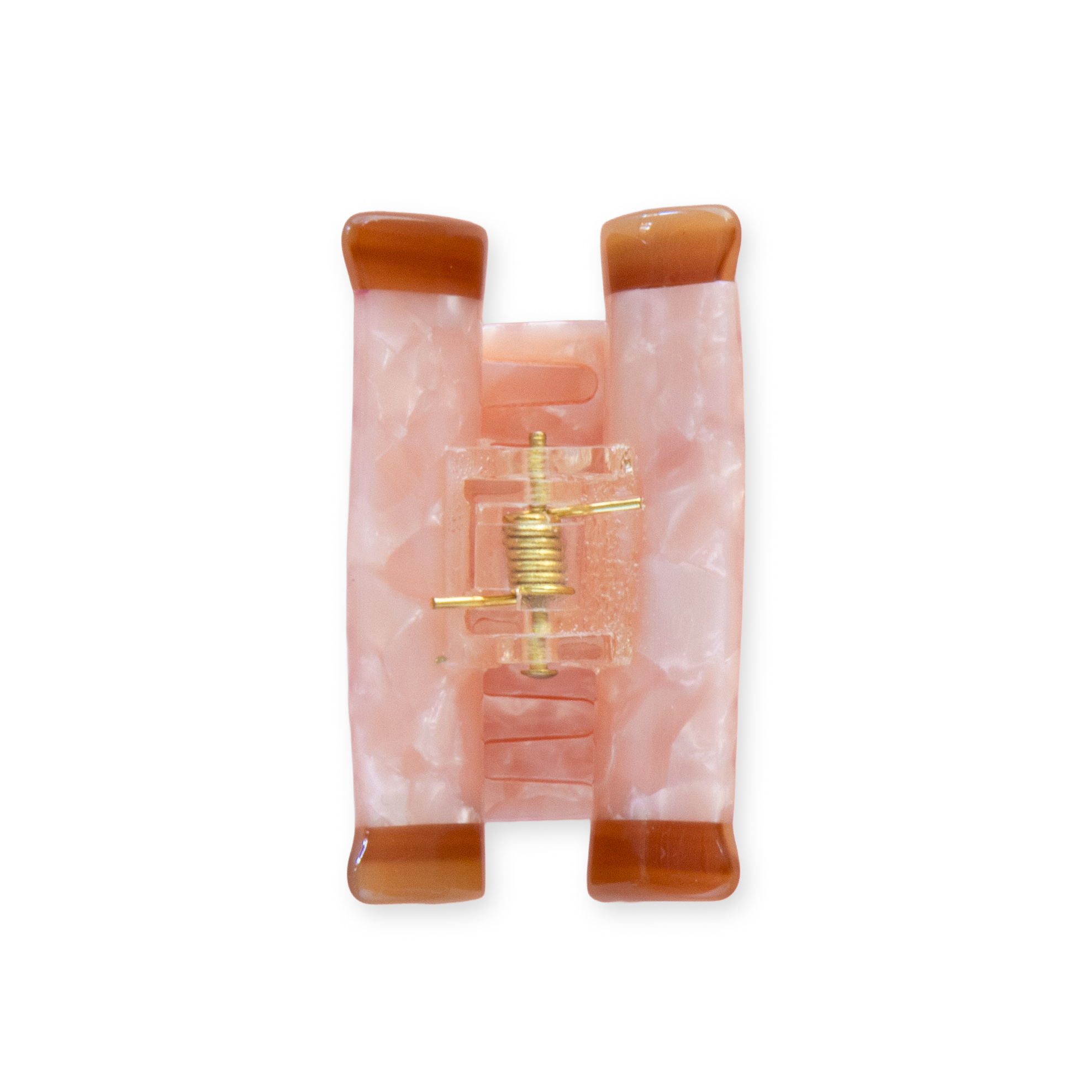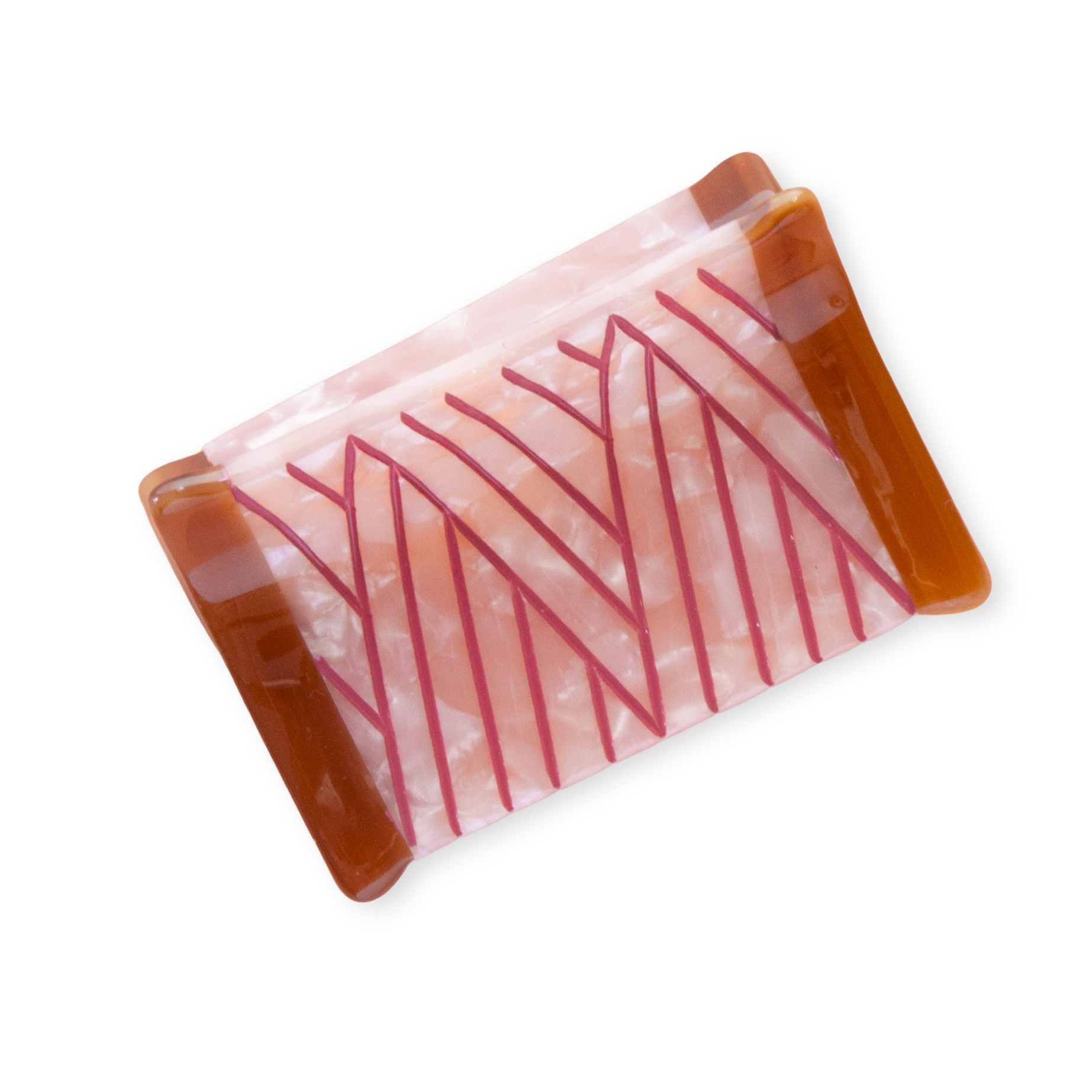 Fabriquée en acétate à base de plantes respectueux de l’environnement, cette petite pince ludique présente un fil irisé rose et des lignes embossées qui ajoutent des détails charmants et de la texture.