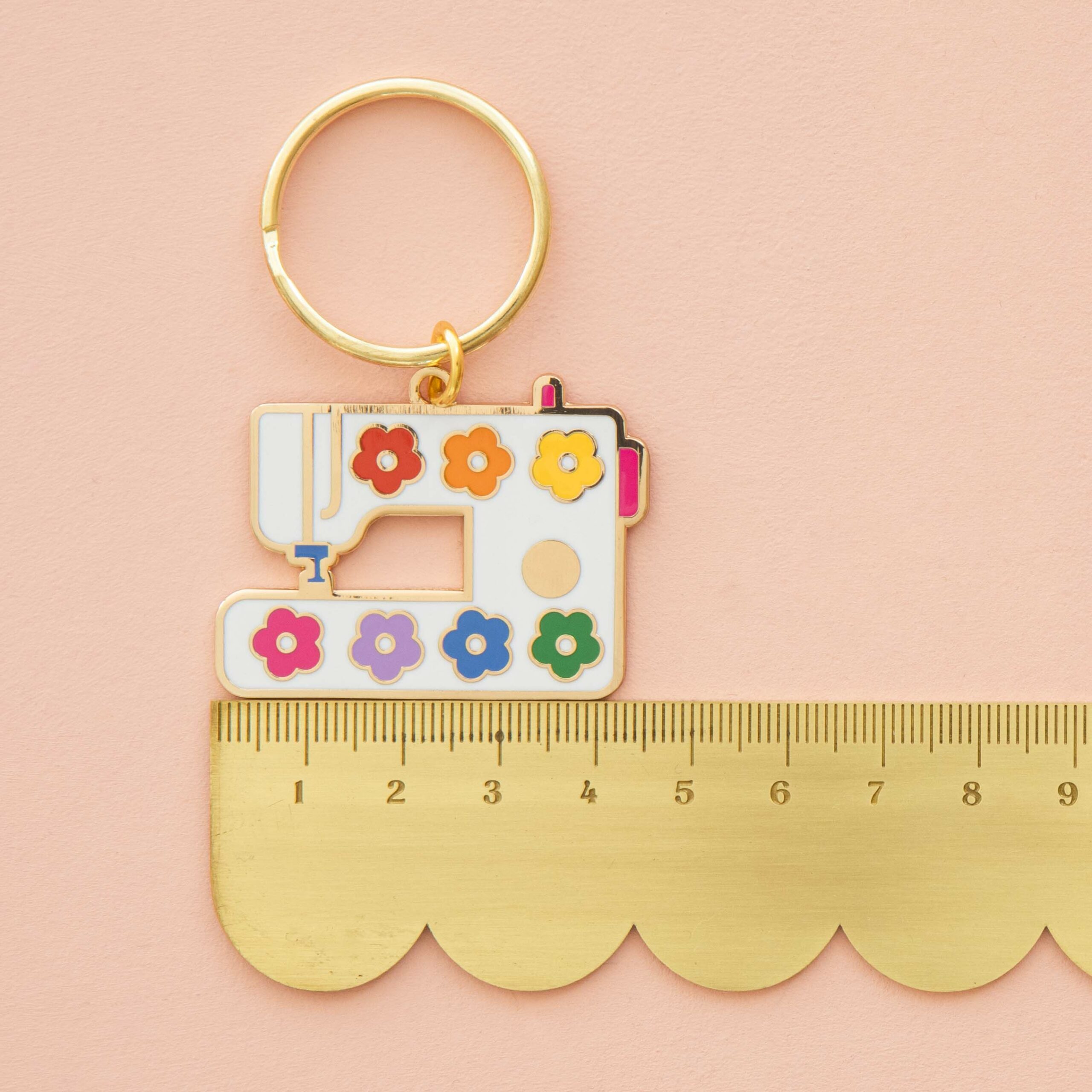 Ajoutez une touche de couleur à vos essentiels de couture avec ce porte-clés machine à coudre Daisy ludique.